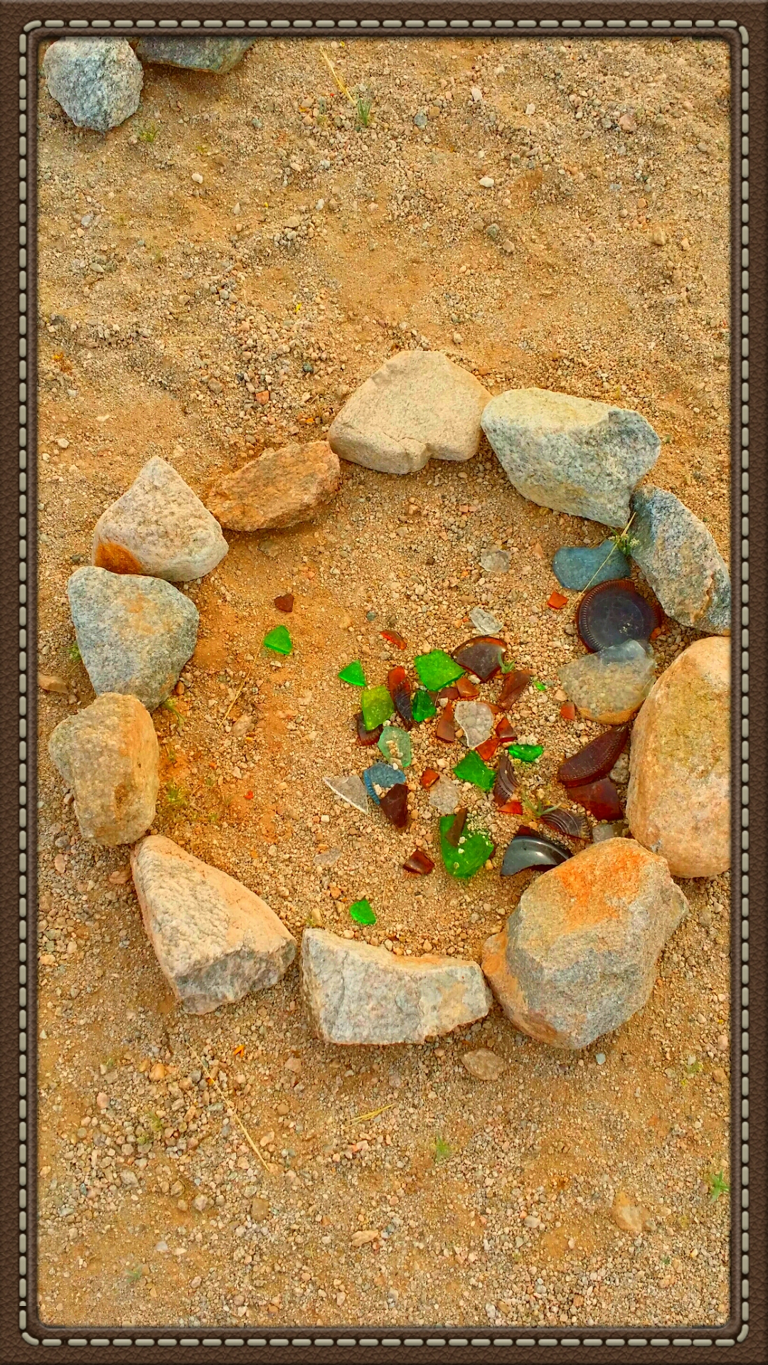 build a rock circle placing the broken glass inside the ring of rocks.
