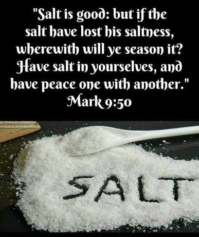 50 Salt is good: but if the salt have lost his saltness, wherewith will ye season it? Have salt in yourselves, and have peace one with another.